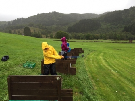Tysdagen fekk me ein våt dag på golfbanen med Ole-Kristian Dalen. Borna fekk varma seg på ferske bollar på Haaheim Gaard, samt at me fekk tørka litt opp i gymsalen på Uggdal skule.