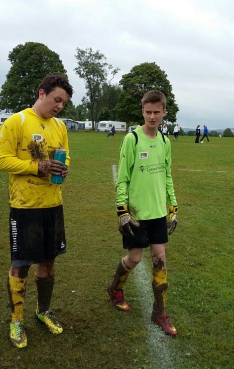 Håkon Knudsen og Erik Enes stod for scoringane våre i tidenes gjørmebad der Håvard Hellvik gav alt for laget. Alt i alt ei grei turnering for oss.