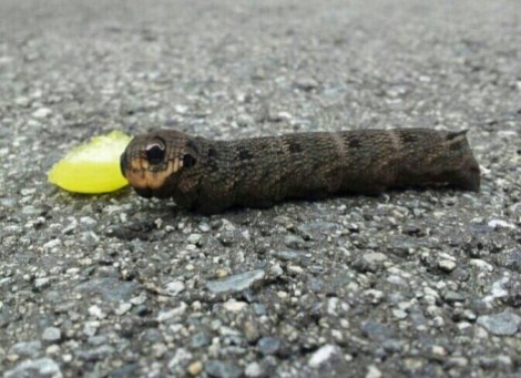 Forsøk på å fore den med drue og peanøtt, var heller mislukka og resulterte i at den trekkte seg saman slik at nokre “skremmande auger” kom til syne.