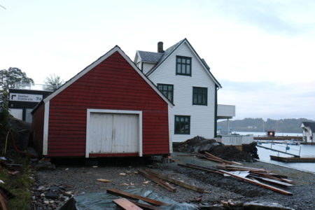 Flytta naustet med to kranar