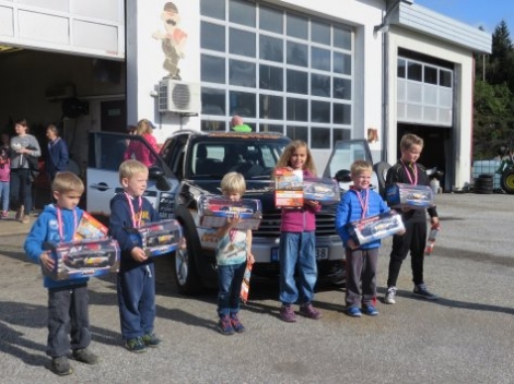 Alle fekk diplom,  brus og vafflar. Dei tre raskaste i kvar klasse fekk medalje, og kvar sin fjernstyrte bil i premie!