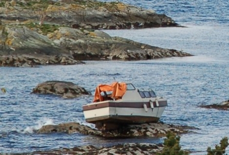 Båten gjekk på grunn natt til laurdag, og båtføraren fekk assistanse av redningsskøyta tidleg om morgonen.