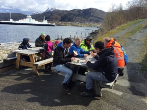 Gjennom god dugnadsånd fekk me både grusa plassen, vaska båtar, snudd flytebryggjer, bygd fine “byggverk” og ete god betasuppa på bryggja.