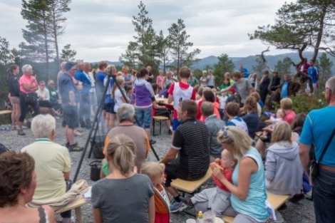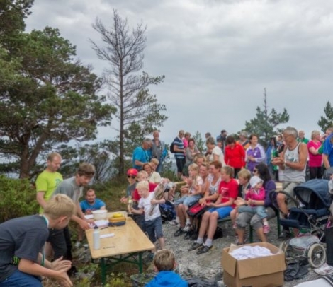 Fra Blåbærhaugen var det en utrolig fin utsikt over de sørøstre deler av Tysnes og Onarheimsfjorden. Skogsbilvei går helt opp, så det er fullt mulig å komme seg opp med småsko. All ære til Onarheim I.L. for arrangementet.