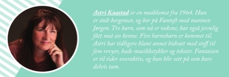 Astri som er gift med ein Tysnesing, har tidlegare vore busett på Tysnes. Ho var i si tid ein sentral del av Tango Teaterlag, og har også bidrege med stoff til fleire av revyane.