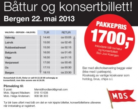 Tur blir bare utført med båt om det er nok kjøpte billetter, konsertbillettene utleveres