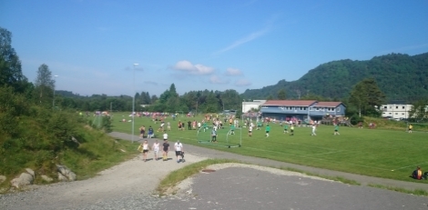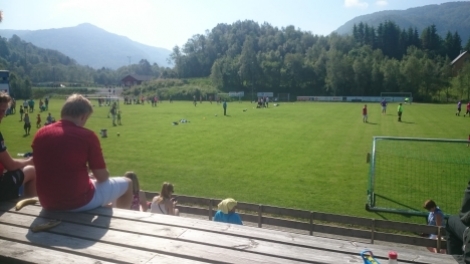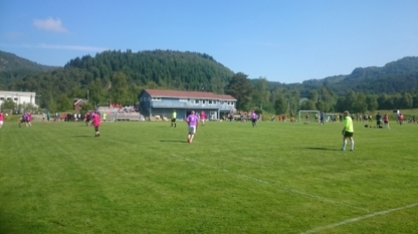 Gressmatten er flott,publikum koser seg og spillerne svetter.