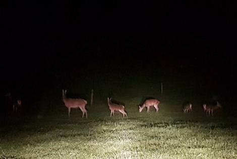 At hjortejakta er i full gong, ser ikkje ut til å bekymra desse hjortane noko særleg.