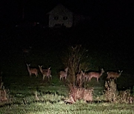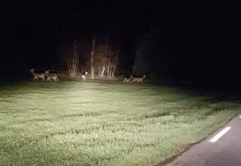 Hjortane beitar rett i vegkanten, så bilistane må vere vakne.