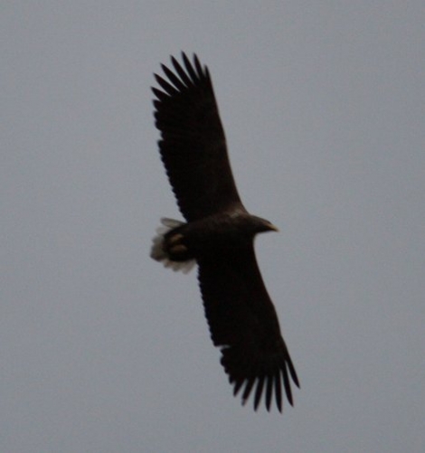 Midt i ein svær skokk med måsar som kretsa rundt på Malkenes i dag, dukka det også opp denne ørna. Måseflokken var nok ein stad mellom femti og hundre, så det må ha vore eit åt ein eller annan stad…