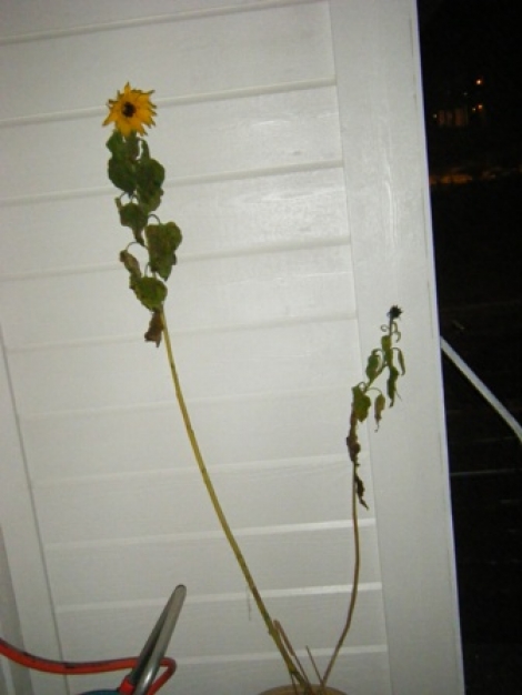Nickolas på 3 år planta ei solsikke i haust i barnehagen sin, og den er 1m 34cm og blomstrer for fullt no i desember, fortel mamma Yvonne Flatråker.