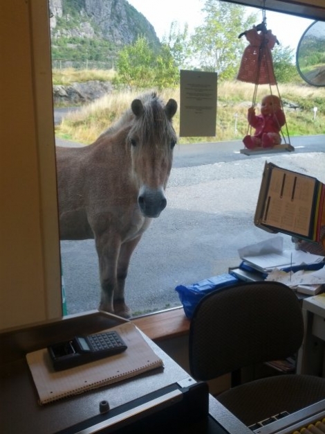 To hestar hadde tatt turen til Gobakkjen, og den eine av dei kom sågar halvvegs inn i butikken!