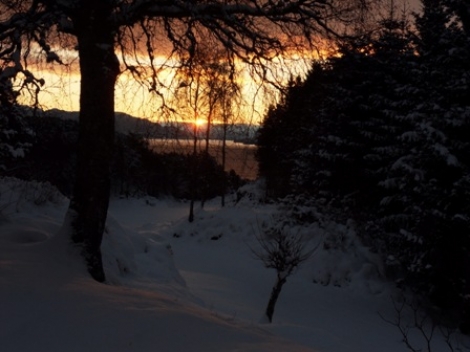 Fredrik Landeråen har sendt inn desse to bileta, som viser utsikten hans frå kjøkenet sitt på Landrøyo.