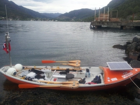 Båten som er 16 fot, vart bygd om med eit lite dekk foran med solcellepanel og ei kalesje som dekker heile båten som han nyttar ved overnattingar. Det mest spesielle er nok årene han har funne opp og konstruert sjølv. Dei er ledda med eit trinsesystem, noko som gjer at han kan ro vanleg samtstundes som andletet er i fartsretninga.
