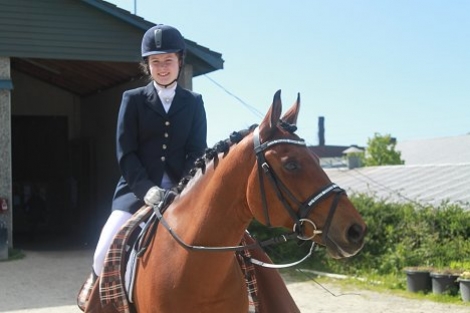 Kristi var veldig nøgd med ponnien sin, som til tross for sterk vind gjorde sitt beste og samarbeida så fint gjennom heile helga.