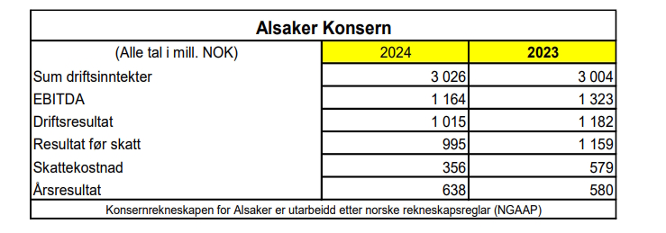 RESULTAT FOR ALSAKER KONSERN I 2024