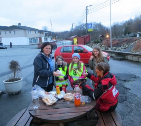 Etter eit par timar var det samling ved senteret der Bygdalaget serverte varme pølser og brus.