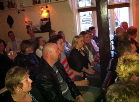 Mandelhuset var stappfullt under konserten. Det er jo ikkje store lokalet, og dei fem Dvergene-karane fekk seg eit lite sjokk då dei kom til plassen tidlegare på dagen og såg det vetle lokalet, og fann fort ut at dette vart ein svært intim konsertkveld.