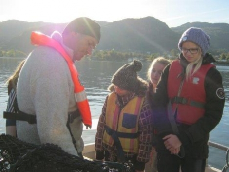 I dag var det med fem elevar frå åttande klasse ein frå niande og ein frå tiande klasse. Først trekte vi eit garn og fekk nokre små lyrar, ein makrell og ein lysing. Lysingen er heller sjeldan så det var stas å få ein slik.