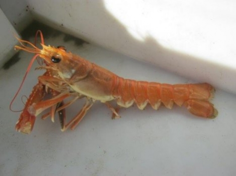 Vi sjekka også ei fisketeine som står på om lag 75 m. I ho var det ein einsleg sjøkreps.