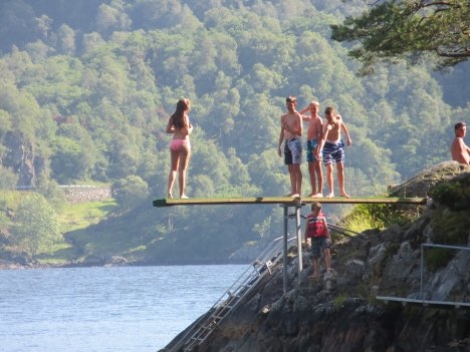 Også i Kjevikjo var det mange som nytte sola og strandlivet i dag.