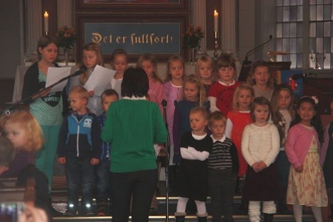I tillegg opptrådde også barnekoret med mange fine songar til applaus for dei mange frammøtte i kyrkja.