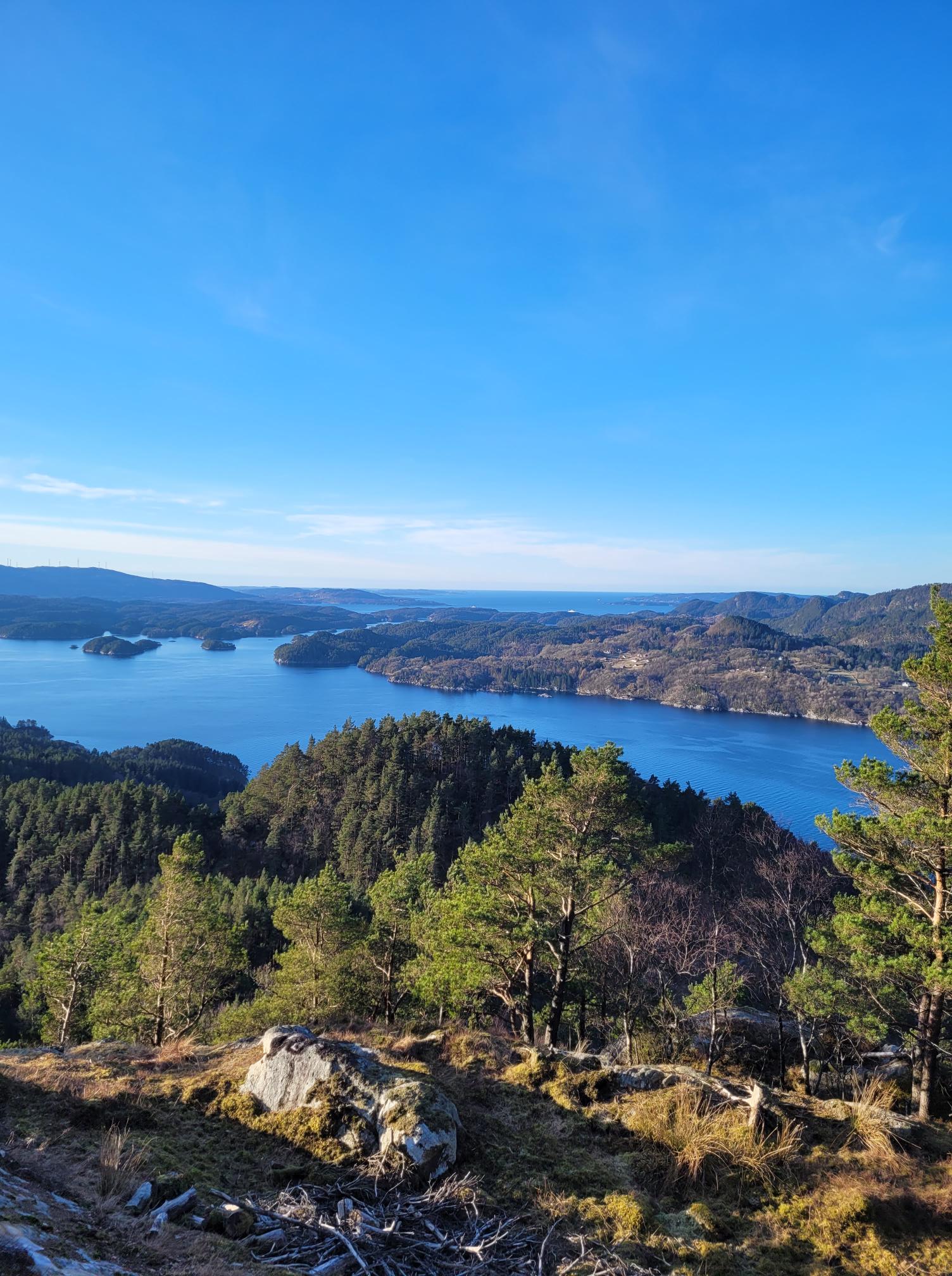Me nyt det vakre vintervêret og gler oss over både naturopplevingar og storslått utsikt mot havet.