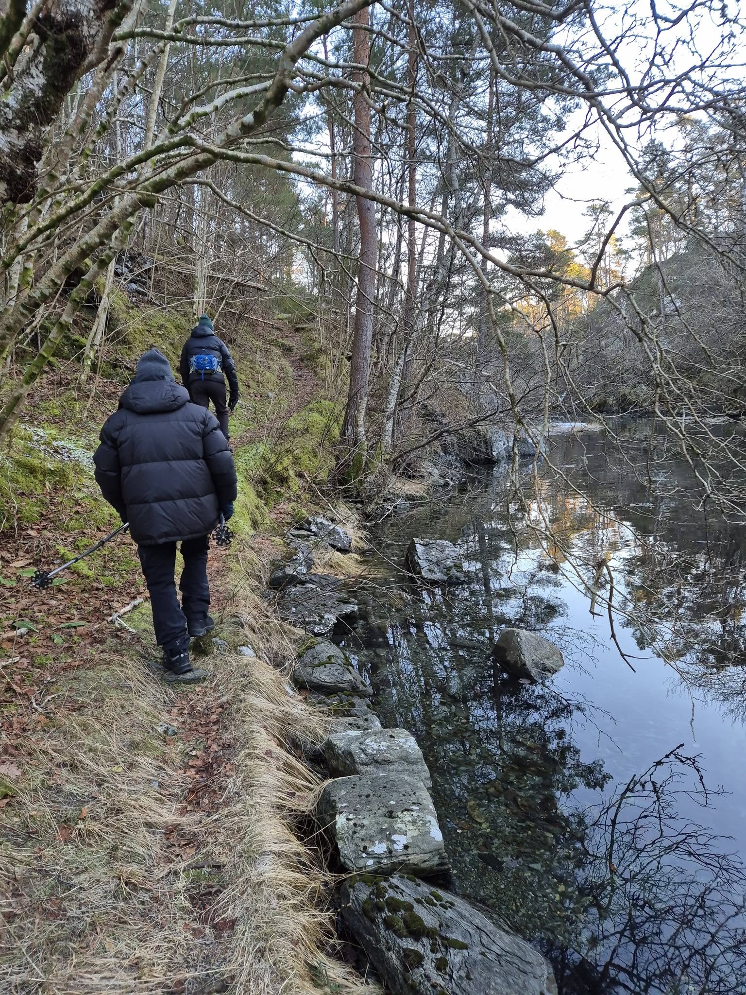 Det var ca – 8 grader i lufta, men ganske vindstille. Inne i skogen var det snøfritt og tørre stiar.