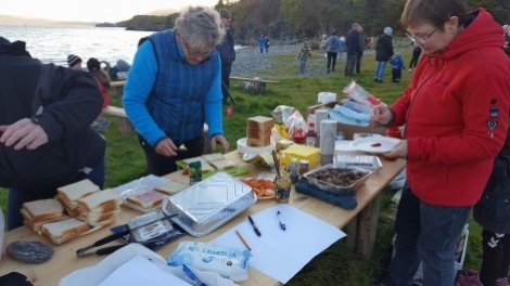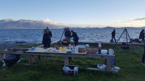 Etterpå blei det servert toast med skinke og ost steikt på bålpanne.