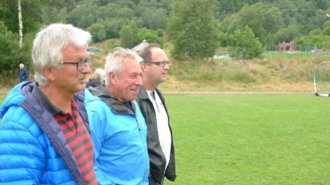 Talentspeiding: Dei gamle Njardar-heltane Arne Kleppe, Helge Olav Instøy og Arnt Birger Vik med eit kritisk blikk på den nye generasjonen sårbeinte fotballspelarar.