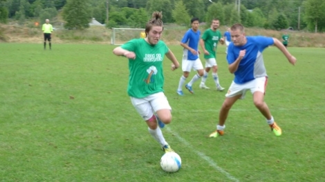 Mykje på spel: Finalen i klasse 1 mellom Zlatans Artister og Barn av Regnbuen var prega av mange mål og slitne bein etter ei lang turnering på regntungt underlag. Brorparten av spelarane på begge laga har gått idrtettslina på U Pihls-gymnas i Åsane. Brødrene Magnus og Gard Bakke frå Tysnesbygda spelte på kvar sitt lag. Denne gongen var det eldstebror Magnus og Zlatans Artister som trakk det lengste strået og vann 5-2 mot sine yngre motstandarar. Allereie under medlajeutdelinga mumla spelarane på taparlaget om revansje til neste år, så siste ord er neppe sagt…