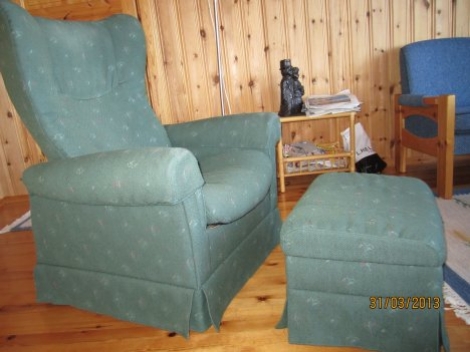Selger og ein regulerbar lenestol med pall.