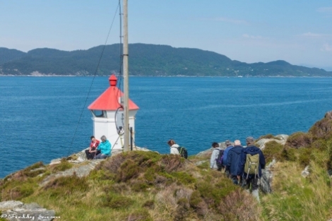 Fra snuplassen gikk vi nordover, og vi hadde alle 10 som mål å komme til fyret og naustene nord for Flygansvær. Naturligvis greide vi det, og vi hadde vår sedvanlige matpause ved fyret hvor vi kunne betrakte båttrafikken og ikke minst 2 båter med tyskere som lå og fisket.