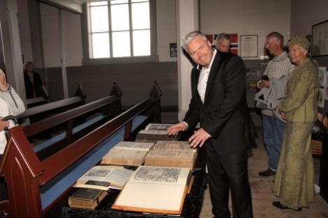 Etter ein utruleg fin konsert i Onarheim kyrkje, gav Rein Alexander seg god tid ved dei unike Kongebiblane som var lagde fram for anledningen.