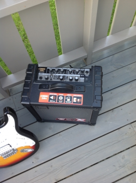 Gitar type Morgan med forsterker/jackkabel og bag selges.