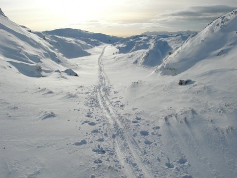 Som nemnt i går hadde Onarheim idrettslag lagt skiløypa frå Solheimsdalen til Grovatnet med snøscooteren.
