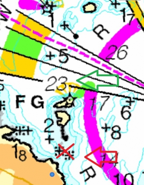 – Dette er et sund med undervandskjær som vises klart i alle sjøkart. Der bør man egentlig holde seg unna. Men ikkje alle leser sjøkarta som bilda viser.