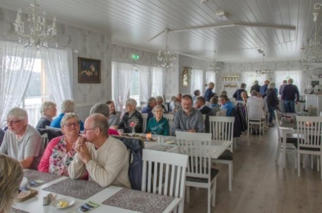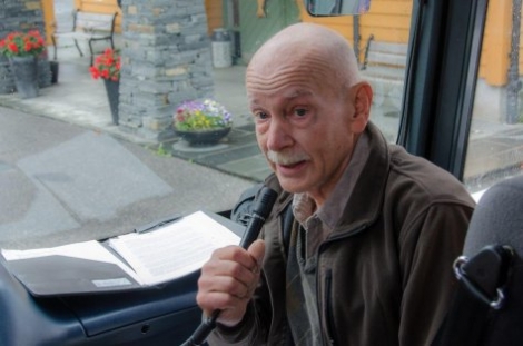 Olav ga oss dette både i fortelling, sang og lunefull humor. Oss var 44 (?) deltakere i bussen som ble eminent kjørt av Olav Kaastad. Tysnes veiene er ikke like lette å komme frem på med stor buss, men her gikk det fint.