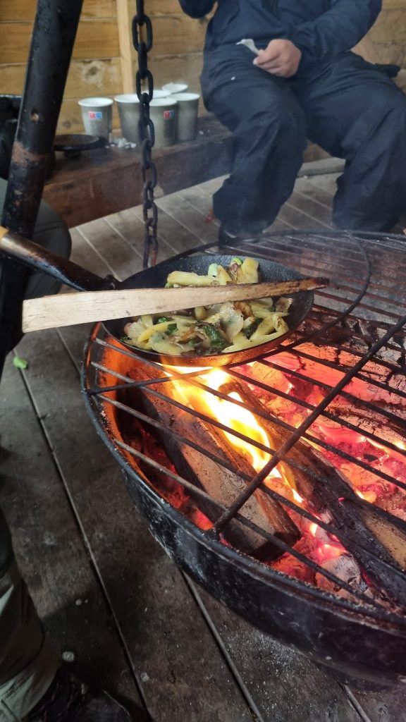 Hønseflokken har blitt litt stor, og ein har tynna i flokken ved å ta ut dei fleste hanane. Dei blir til middag saman med grønsaker frå skulen sin eigen hage – poteter, gulrøtter, bønner og kål. Elevane synes det er stas med mat frå eiga jord.