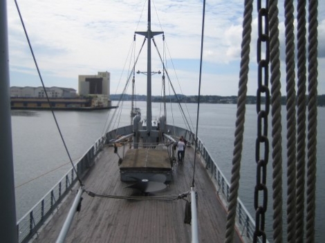 Skipet har dampmaskin , men denne er ikkje operativ enno, så skipet blir slept til Bergen.