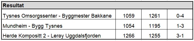 11 pinnefall skilde til slutt, og summane ville ha halde til poeng også i 1. divisjon. Byggmeister Bakkane var ikkje dårlegare, med 1261 pinnefall.