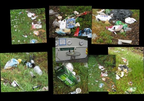 Fullt så festlig var det ikke for oss som måtte rydde opp! La oss slippe dette – legg bosset i containeren (den var nesten tom) eller ta det med.