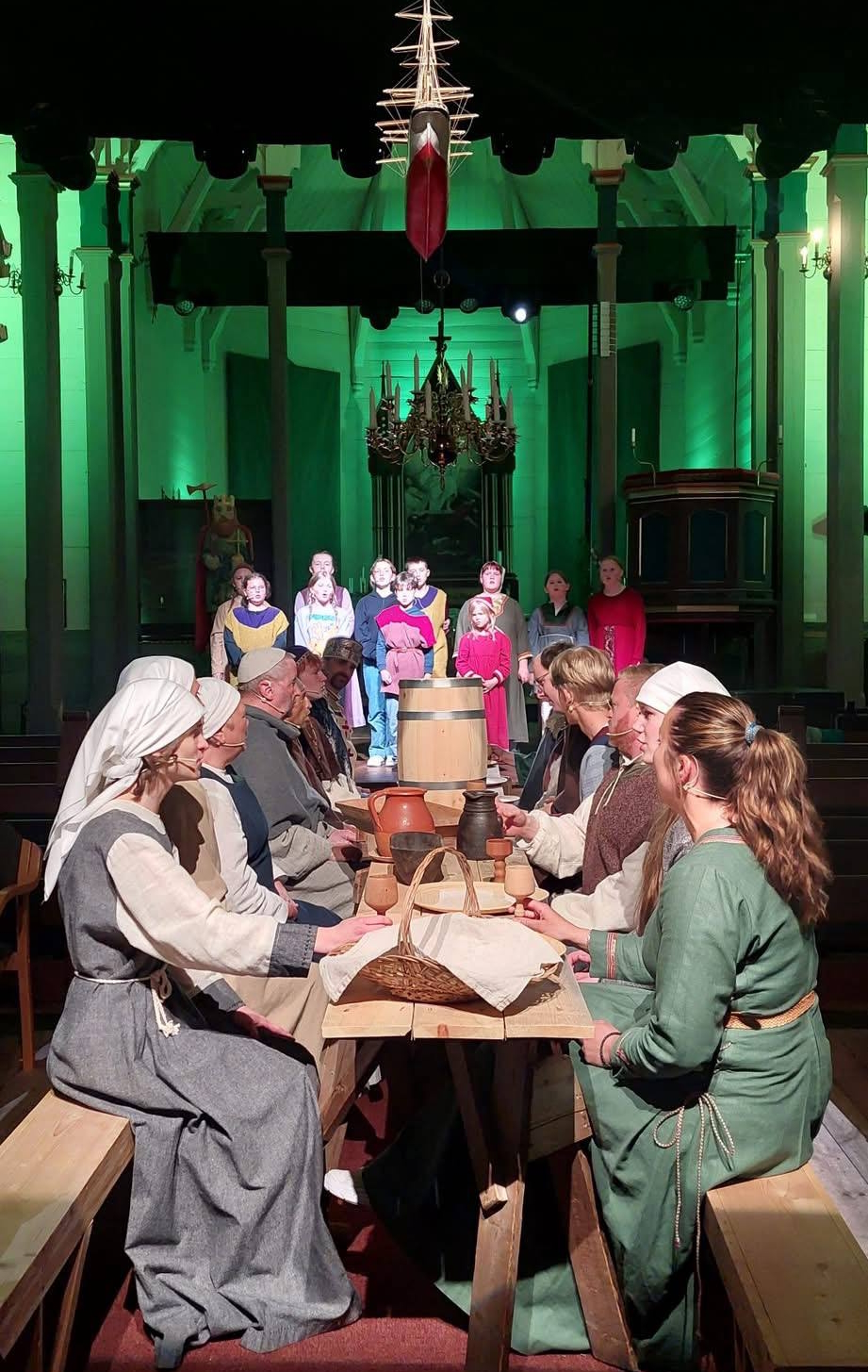 26 skodespelarar, gildekor og musikarar gler seg stort til å ta imot publikum i Kulturkyrkja på Onarheim fredag og laurdag.
