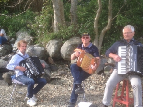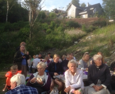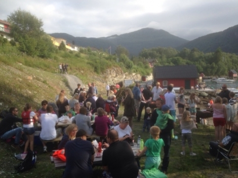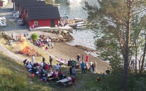 Her var både bål og grillar, ja, til og med trekkspelmusikk for dei som ville svinga seg denne uvanleg flotte midtsommarkvelden.