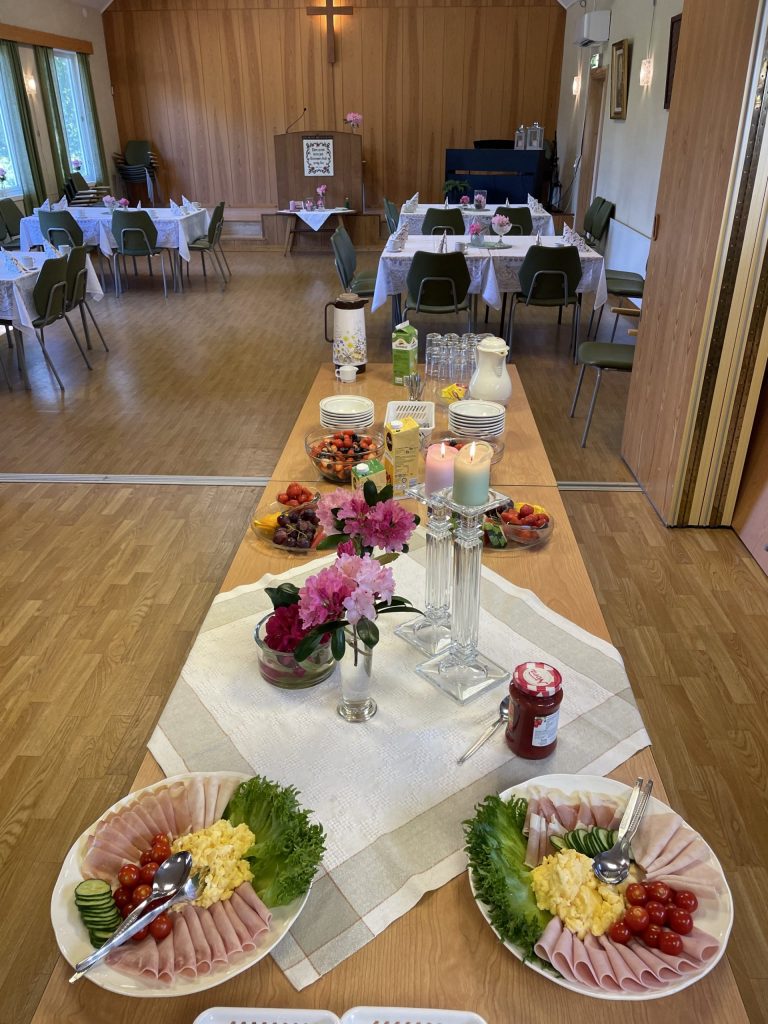 Det er åpent for alle til å spisa lunsj, få gratis lodd og høyra ein andakt.