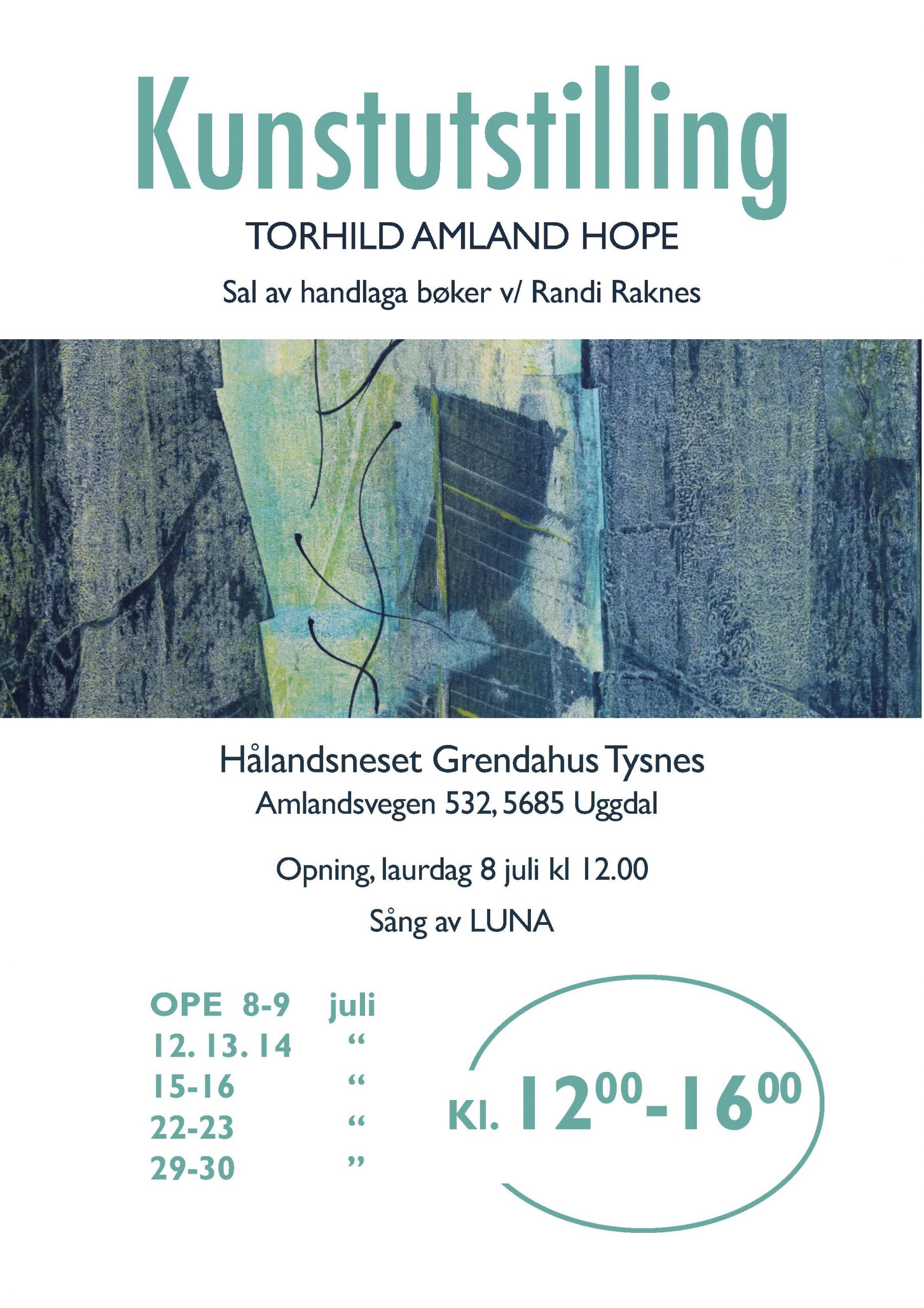 Laurdag 8. juli klokka 12:00 er det offisiell åpning av kunstutstillinga i Hålandsneset Grendahus.