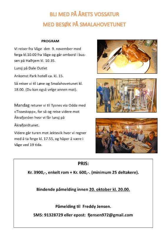 Vossatur til smalahovetunet 9.nov! obs påmeldingsfrist