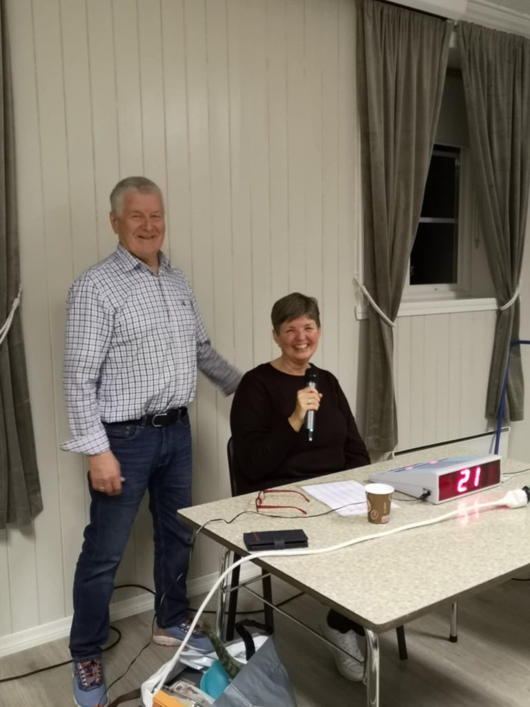 Bingovertane Lars og Anne er godt fornøyd med vel gjennomført bingo.