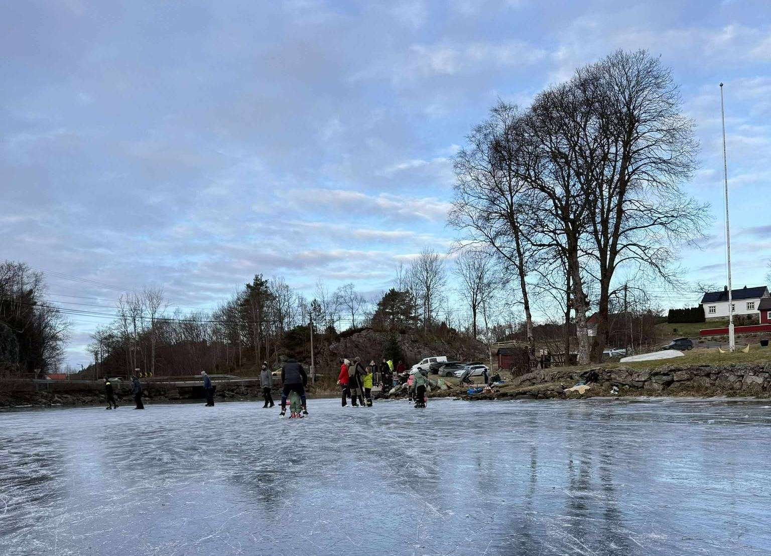 Isen på Fiskevatnet i Lunde har vore full av ungar og vaksne som har kost seg på skøyter dei siste dagane.