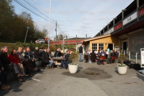 Det var eit snev av vår i dag med sol og nesten blå himmel, og ein del folk hadde funne vegen for å høyra musikklaget spela.
